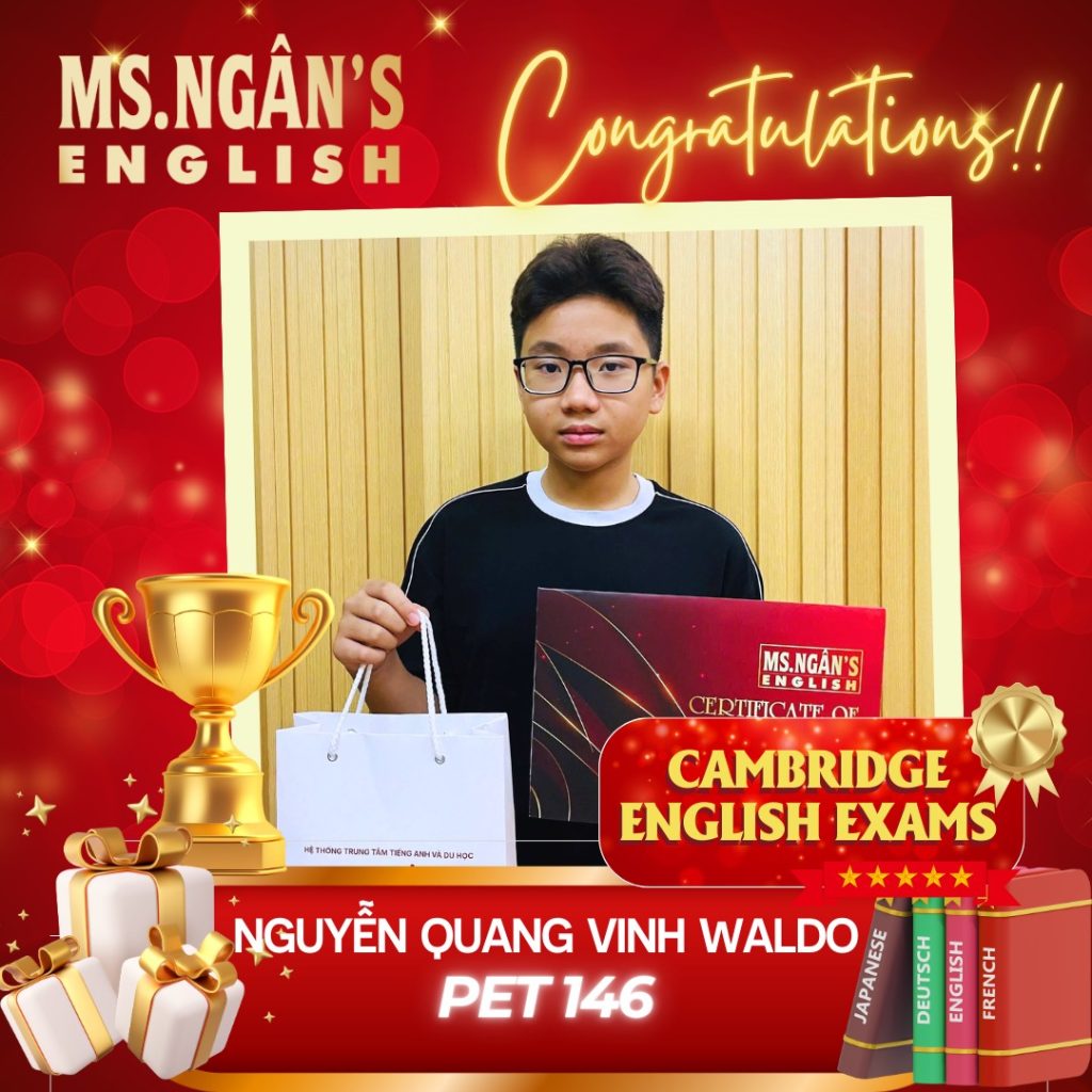 • XIN CHÚC MỪNG CÁC HỌC VIÊN XUẤT SẮC ĐẠT ĐIỂM CAO KỲ THI CAMBRIDGE CÙNG TRUNG TÂM MS.NGÂN’S ENGLISH