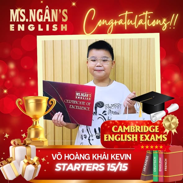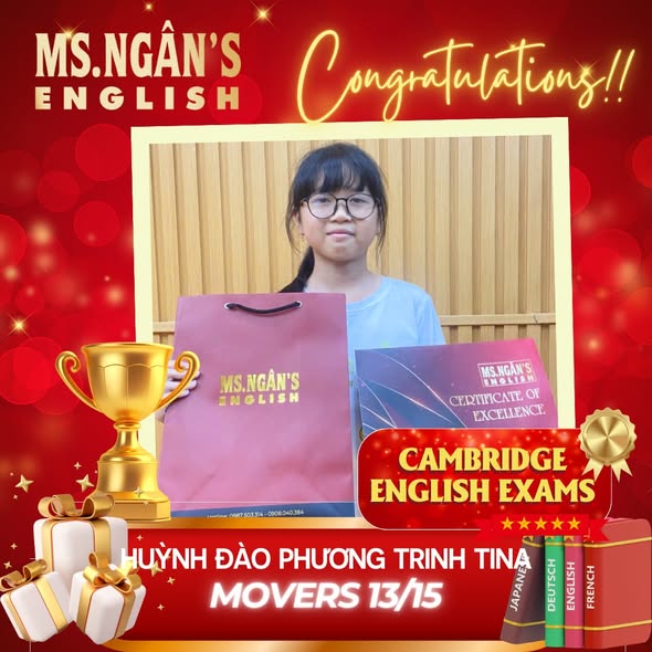 Với các bạn nhỏ vừa đạt thành tích cao: Hãy tiếp tục duy trì phong độ, giữ vững tinh thần học tập để chinh phục những đỉnh cao mới trong các kỳ thi sắp tới nhé! Hệ thống trung tâm Anh ngữ và Du học Ms.Ngân English luôn đồng hành và ủng hộ các con.