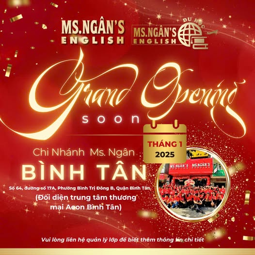🎉 TIN VUI ĐẦU NĂM 2025: HỆ THỐNG TRUNG TÂM ANH NGỮ VÀ DU HỌC MS. NGÂN'S ENGLISH CHÍNH THỨC CÓ MẶT TẠI BÌNH TÂN 🎊 Khởi đầu năm mới với một tin vui đặc biệt cho