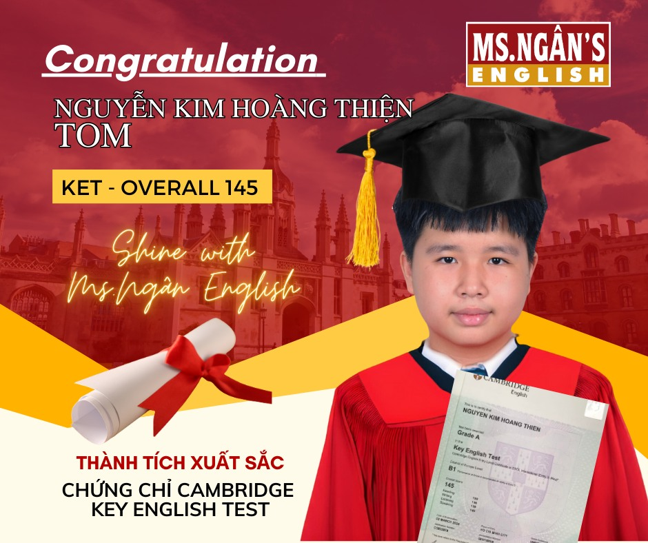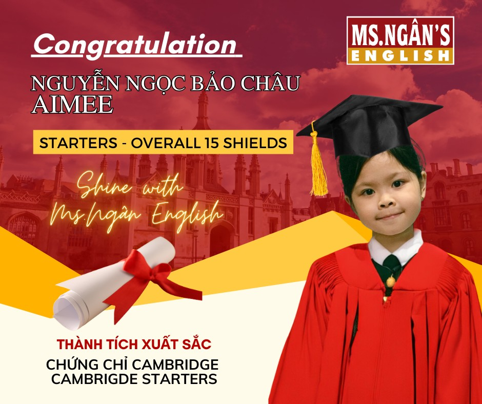 Ms. Ngân English xin gửi lời chúc mừng đến các học viên đã đạt được thành tích xuất sắc trong kỳ thi Cambridge vừa qua. Chúc các em luôn giữ vững tinh thần học tập và gặt hái nhiều thành công hơn nữa trong tương lai!