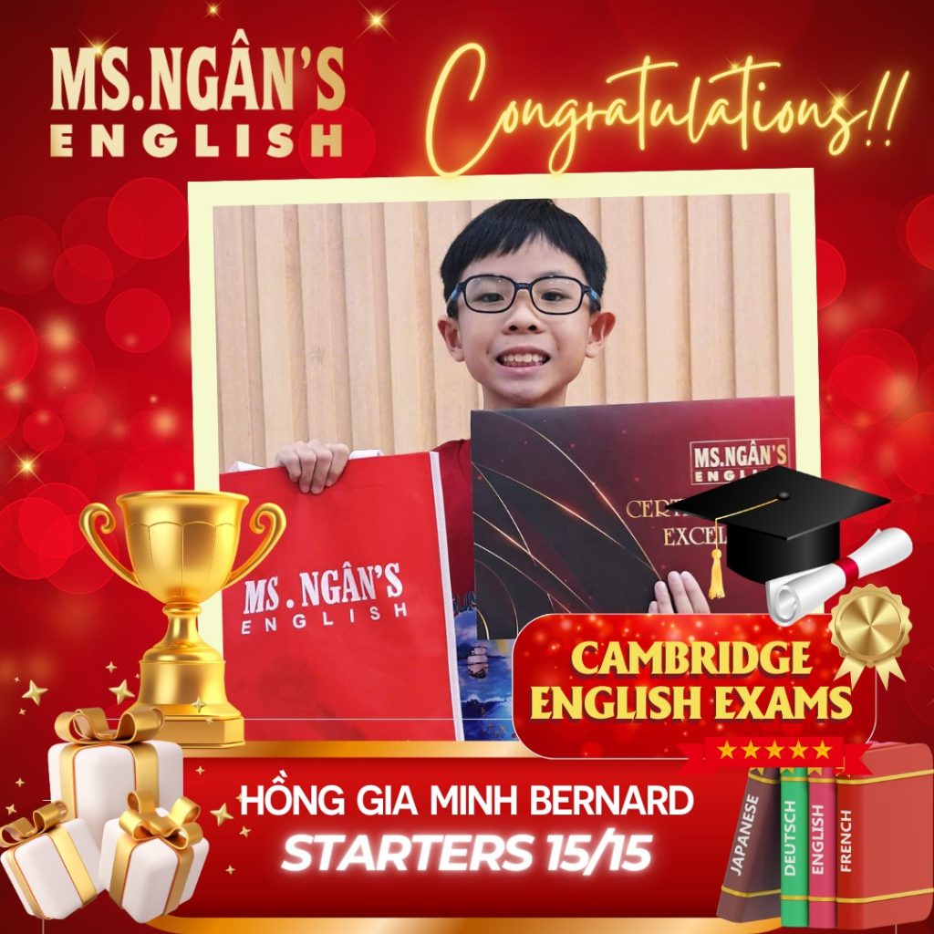 Hệ thống trung tâm Anh ngữ và Du học Ms.Ngân English xin được chia sẻ niềm vui và tự hào khi chứng kiến thành tích xuất sắc của các học viên trong kỳ thi chứng chỉ tiếng Anh Cambridge vừa qua: