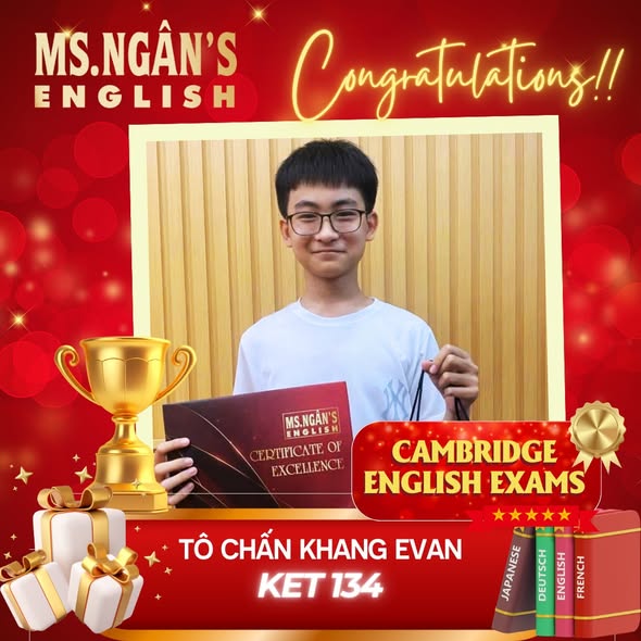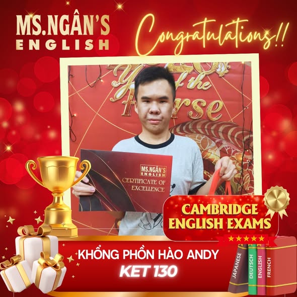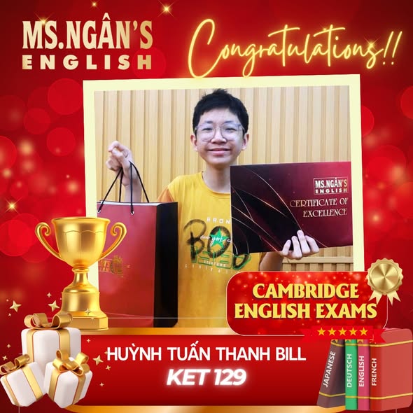 Hệ thống trung tâm Anh ngữ và Du học Ms.Ngân English xin được chia sẻ niềm vui và tự hào khi chứng kiến thành tích xuất sắc của các học viên trong kỳ thi chứng chỉ tiếng Anh Cambridge vừa qua: