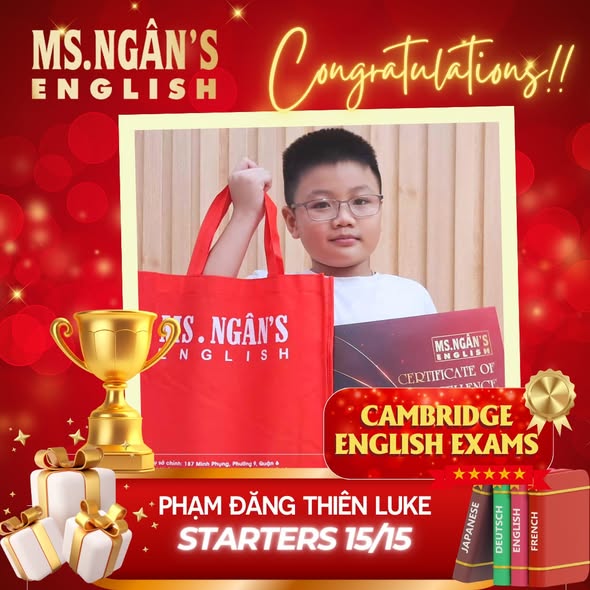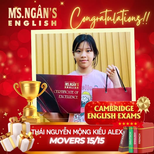 Với các bạn nhỏ vừa đạt thành tích cao: Hãy tiếp tục duy trì phong độ, giữ vững tinh thần học tập để chinh phục những đỉnh cao mới trong các kỳ thi sắp tới nhé! Hệ thống trung tâm Anh ngữ và Du học Ms.Ngân English luôn đồng hành và ủng hộ các con.