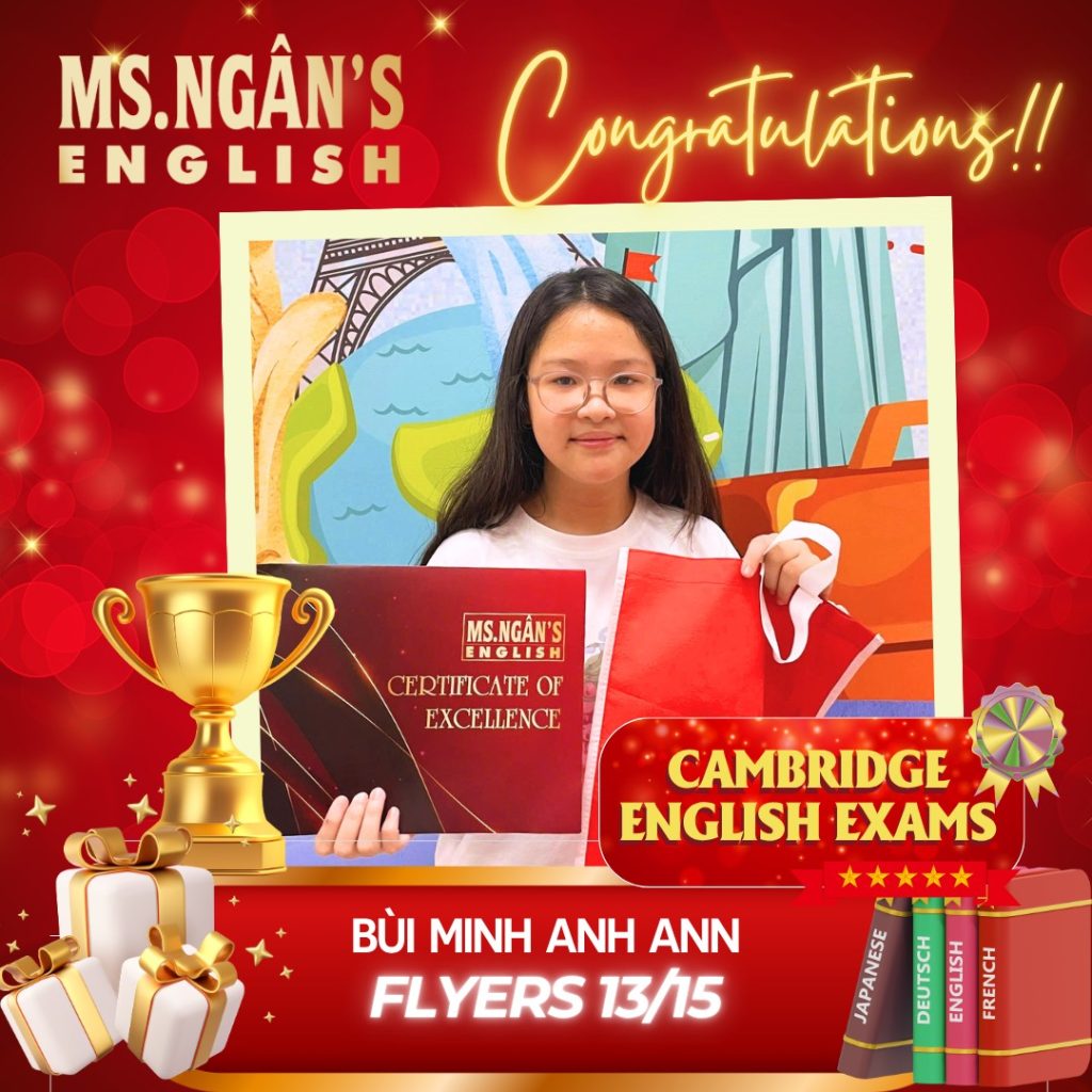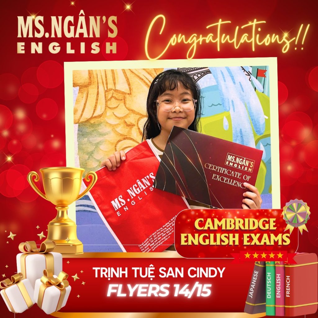 XIN CHÚC MỪNG CÁC HỌC VIÊN XUẤT SẮC ĐẠT ĐIỂM CAO KỲ THI CAMBRIDGE CÙNG TRUNG TÂM TIẾNG ANH MS.NGÂN’S ENGLISH