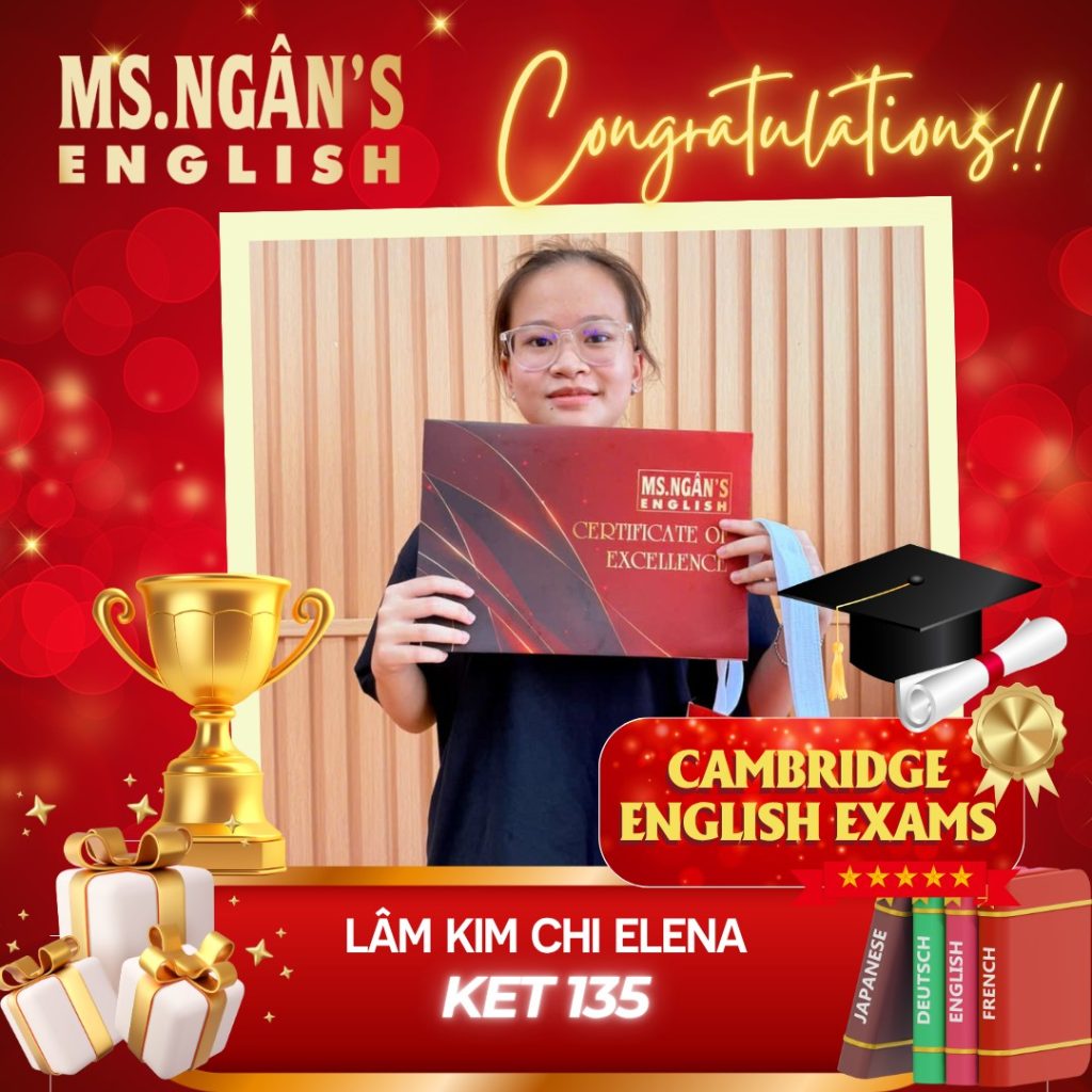 • XIN CHÚC MỪNG CÁC HỌC VIÊN XUẤT SẮC ĐẠT ĐIỂM CAO KỲ THI CAMBRIDGE CÙNG VỚI TRUNG TÂM MS.NGÂN’S ENGLISH